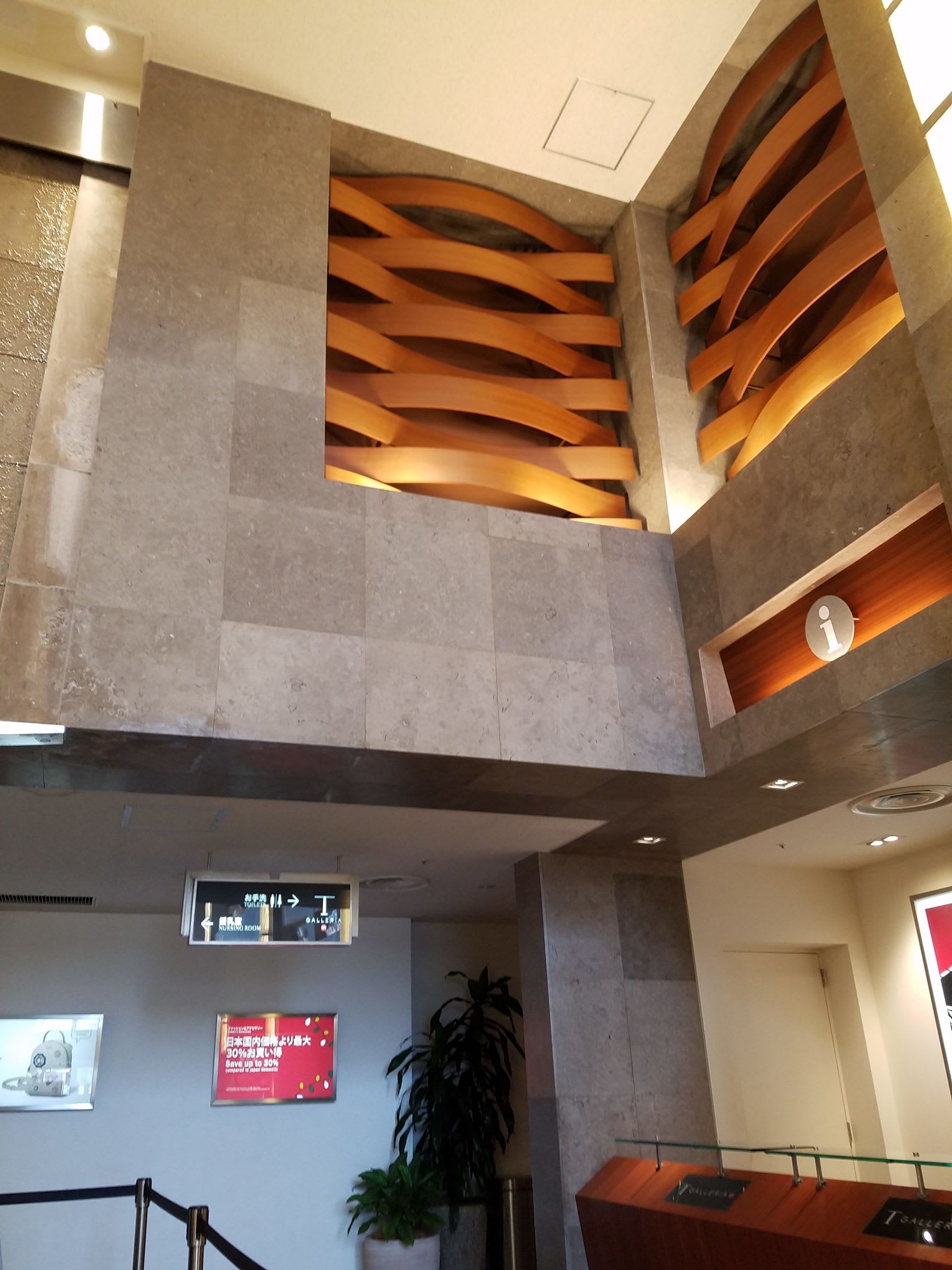 ロビーの装飾に岩と水を使った不思議な装飾がされていました。