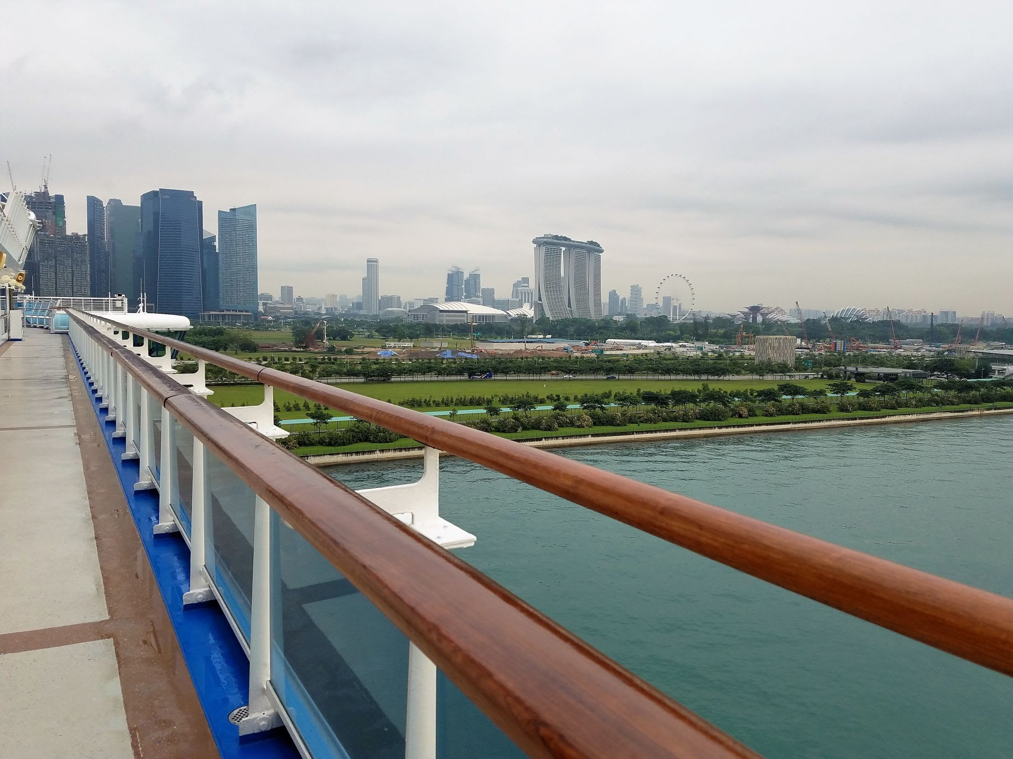 そして クルーズもたくさん行き来しています。クルーズターミナルは有名なマリーナベイサンズの見えるところに着岸します。街まではちょっと距離はありますが、見えるところなので歩いていくこともできそうです、私たちはすぐに飛行機に乗るので空港までのシャトルを利用して移動しましたが、20分ほどでつきました。滞在するようならシャトルもあるかと思われます。