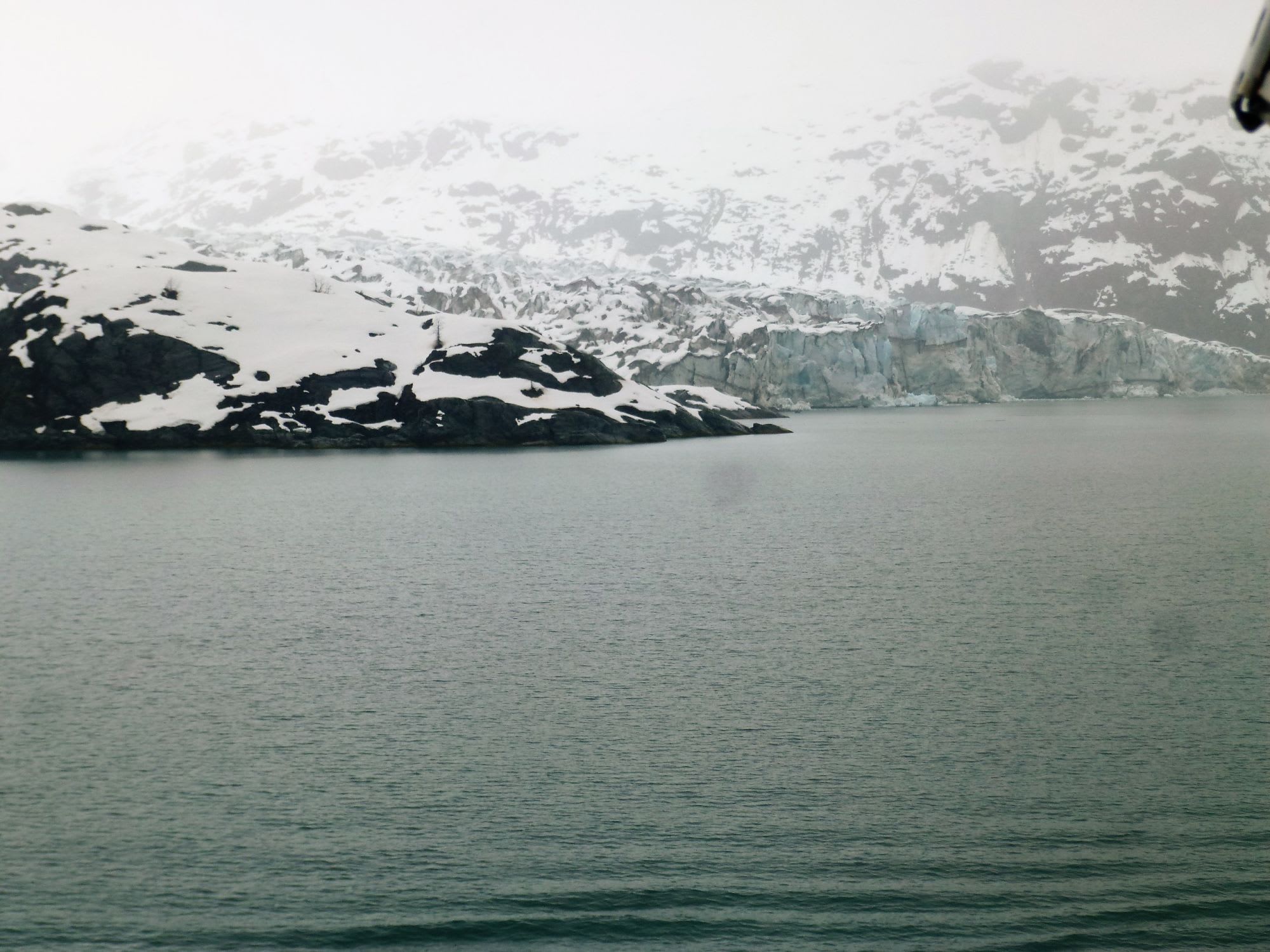 グレーシャーベイで氷河に接近した時は 雪交じりの雨のうえ風の強い日で気温は2度でした。