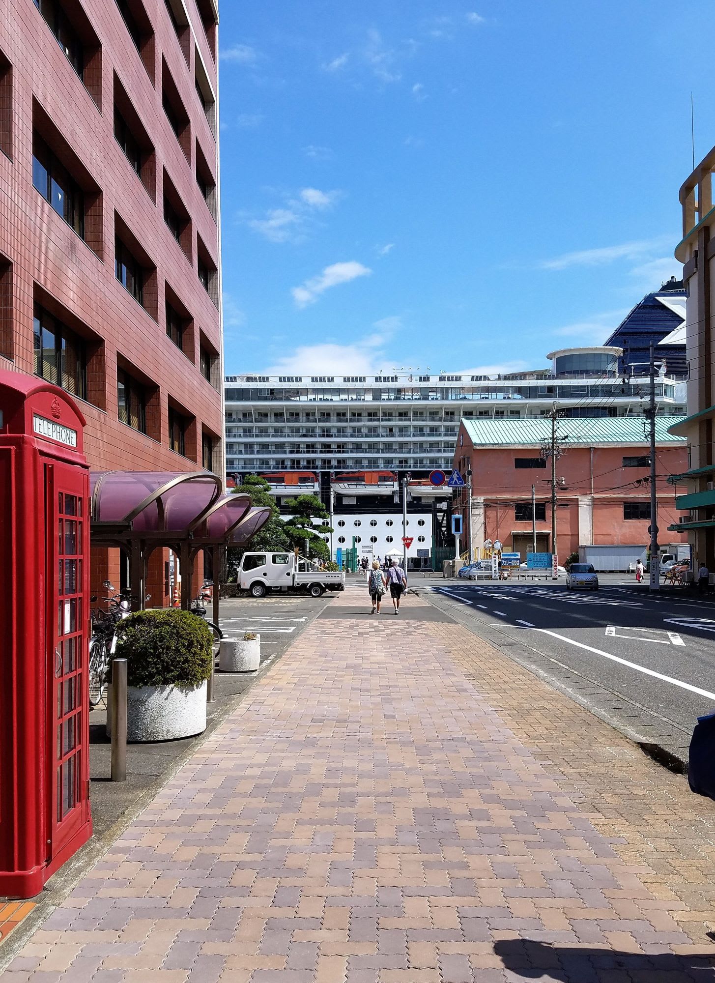 広い歩道の歩きやすい港周辺から ひなびた昔ながらの商店街まで足を延ばすと 良い運動になるくらいの距離でした。