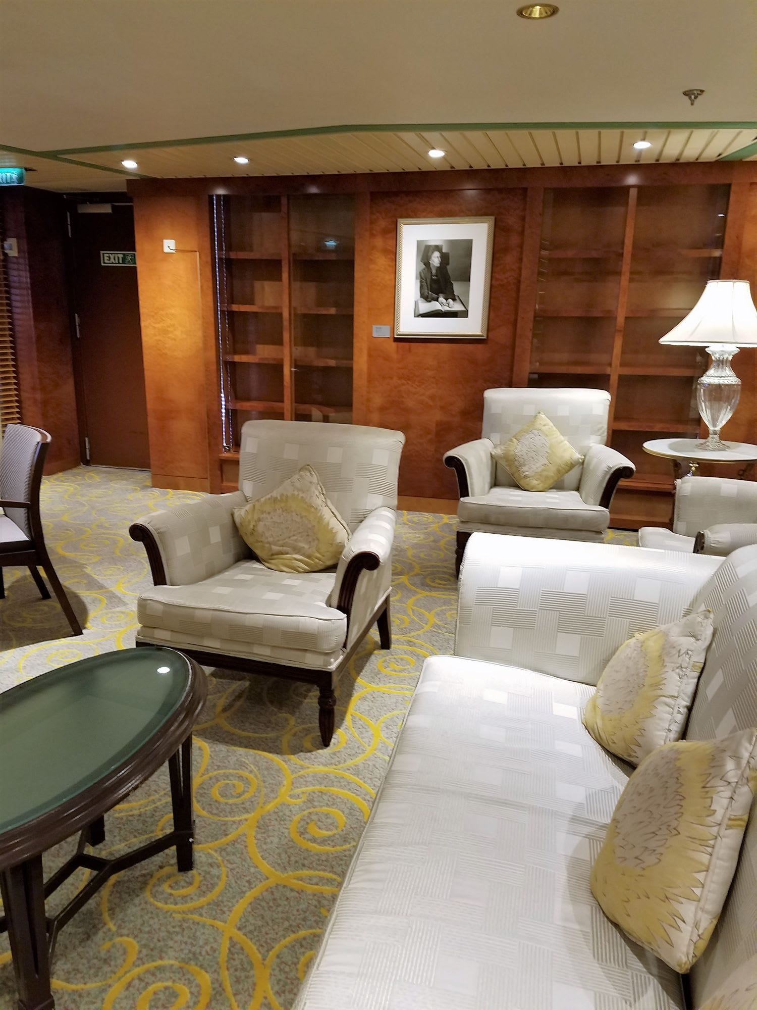 後、船の中心部に図書室や コンピューターのラウンジ。10階と11階にたくさんの居心地のいい椅子がおいてあります。