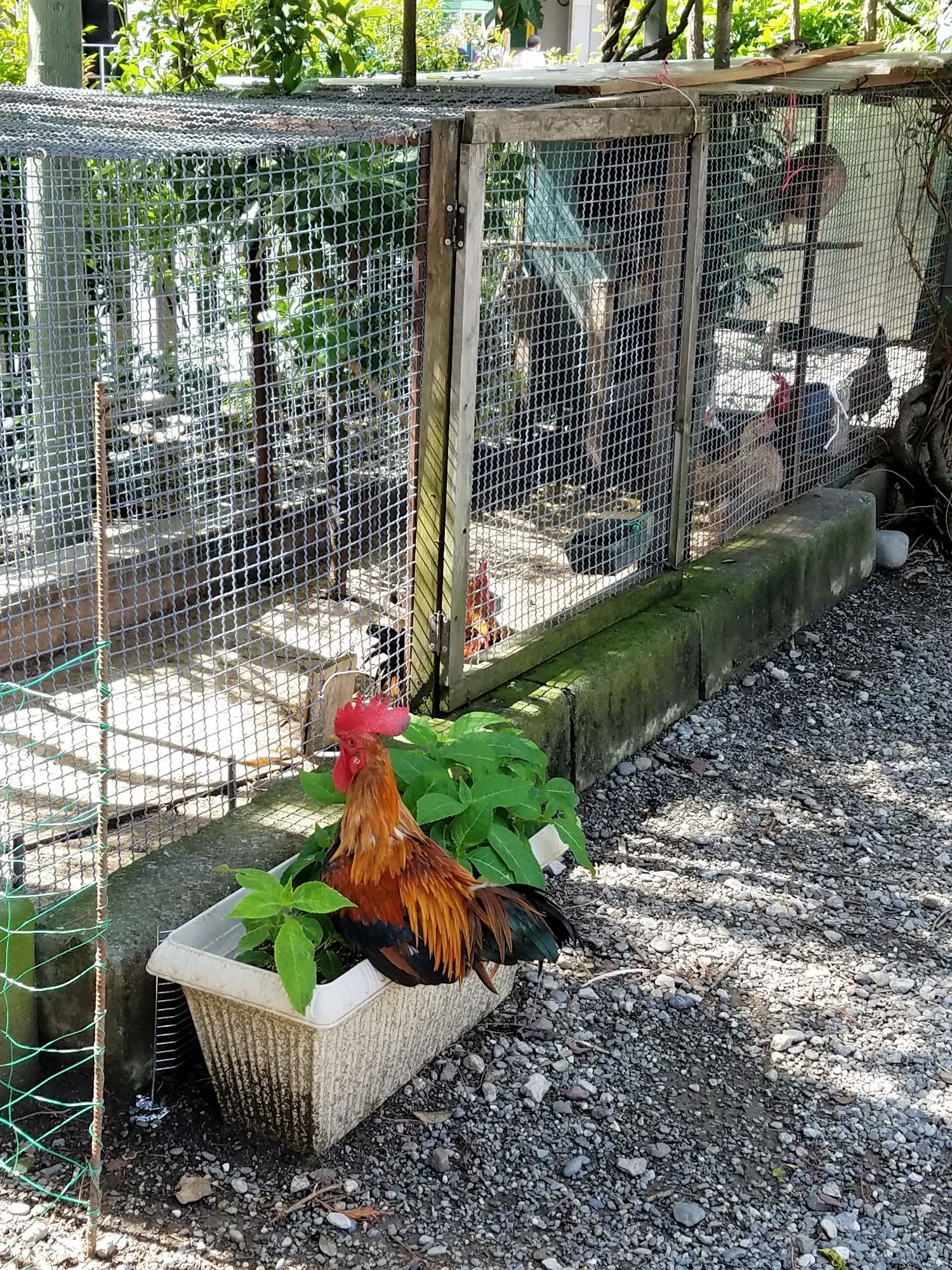 高知城のそばにも 神社がありました。もちろんお参りしましたが 何とも かわいらしく鶏が たくさん飼われていて 元気に歩き回っています。