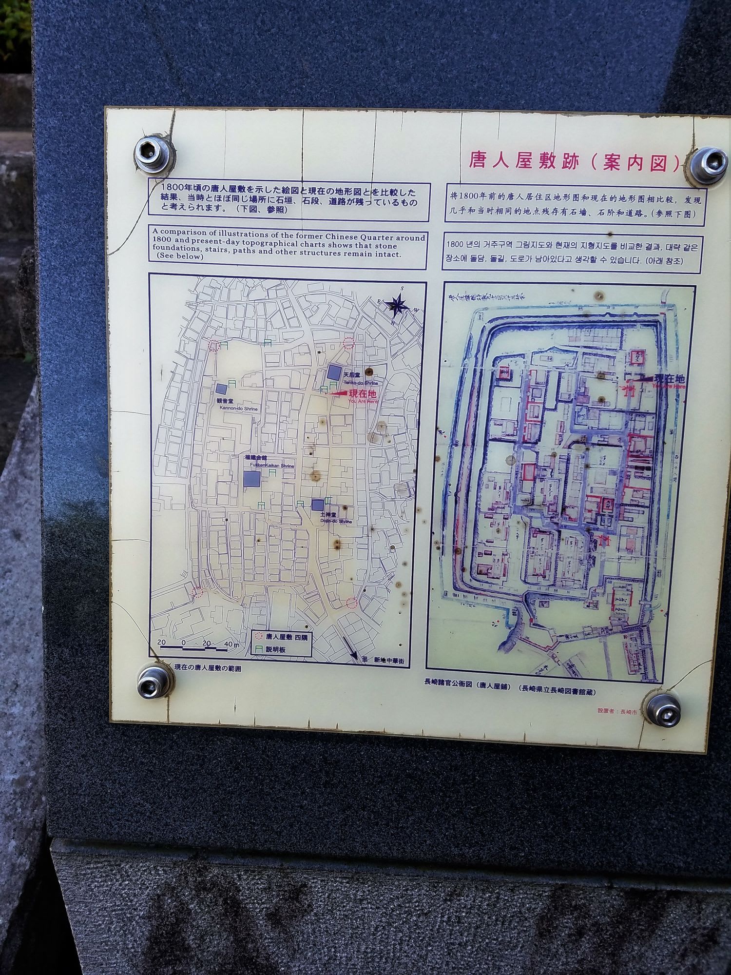 そこから、山側にいくと唐人屋敷跡の 一帯となり、坂道ですが 不思議な建物や お庭なども見学できます。中ほどのところにお手洗いを借りられるところもありました。長崎に限らず、港町は たいてい、坂が多いので、 自分で 回ろうと思ったら 靴には 気を使っておいた方が 無難です。