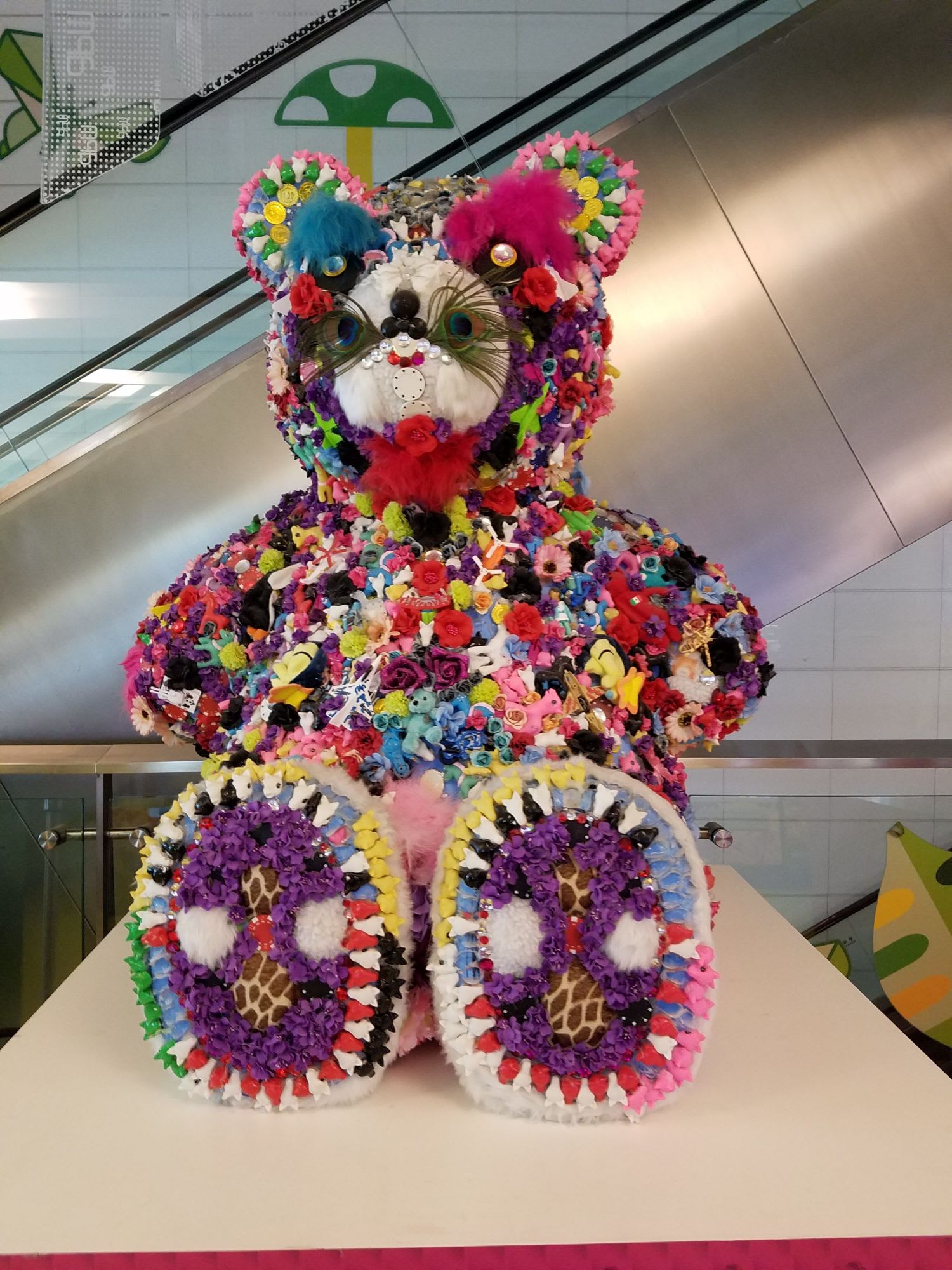 セールか何かのキャンペーンのための飾りらしい、動物がなんともカラフルで 香港らしい。