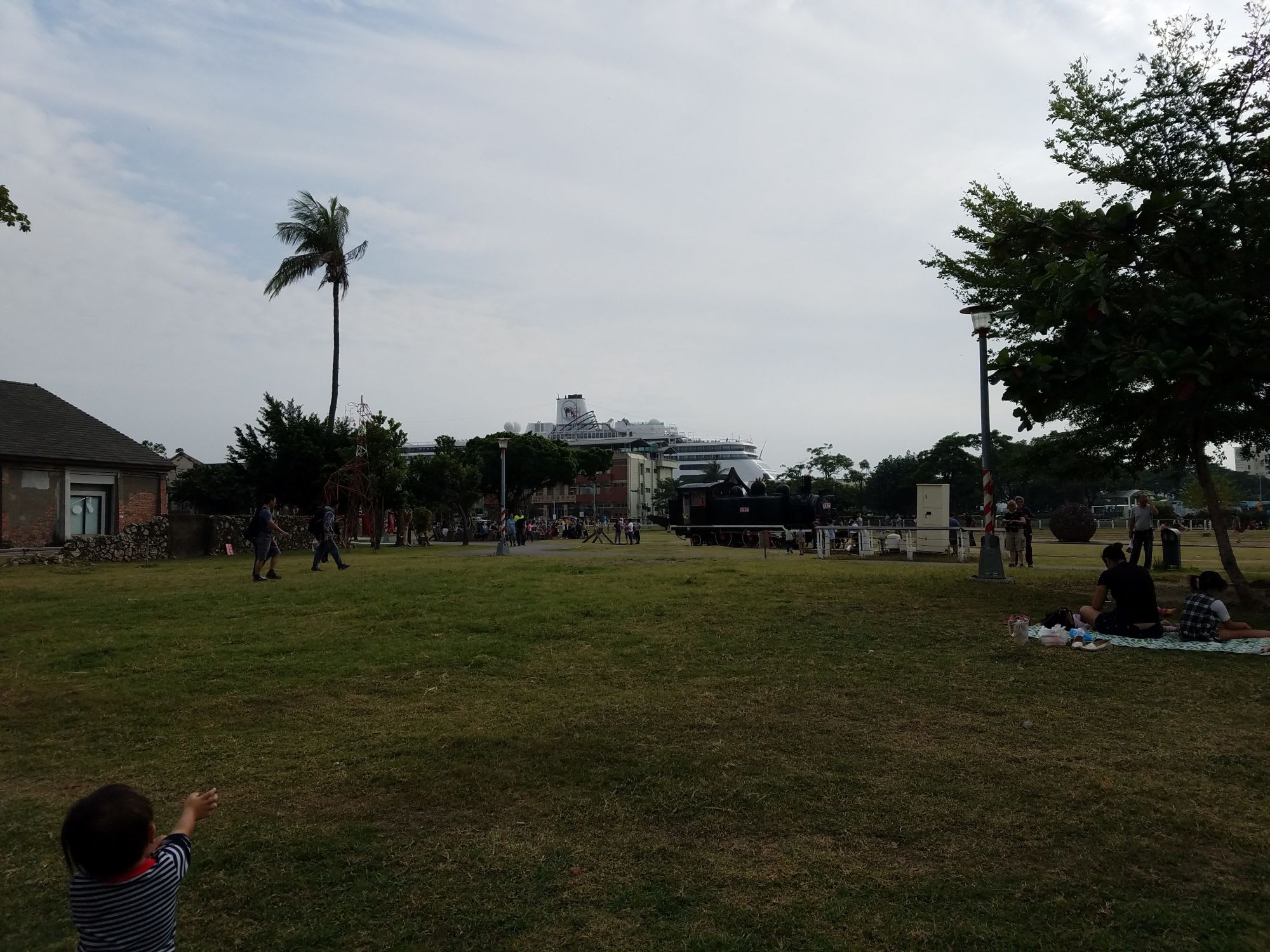 子供用の小さい列車の線路がめぐらしてあって子供たちが 子供たちが楽しんでいますし、古倉庫のほうはすっかり、きれいに改そうされて、お洒落なアートギャラリーだったり、オリジナルの商品を扱うショップがあったり、ちょっと、横浜の赤レンガを思いだすようなところになっています。公園のほうは、広い芝生もあり、