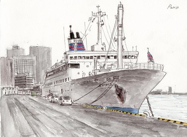 らつ子さん、ありがとうございます。 岸壁に接岸中の斜め前からの構図はあまり得意ではないのですが、今回は何とかなりました。 らつ子さんのスケッチも楽しみにしています。