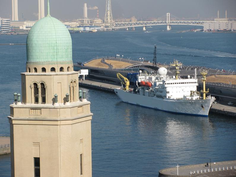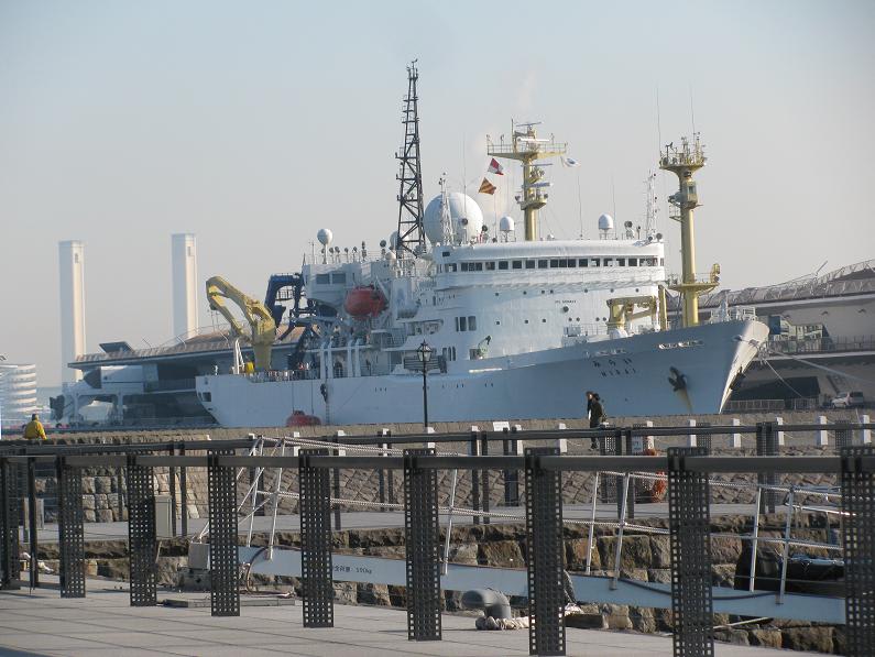船籍港はあいかわらず青森県のむつ市、今回は南太平洋での観測活動を終えてこの横浜経由で母港のむつ市に帰るようです。