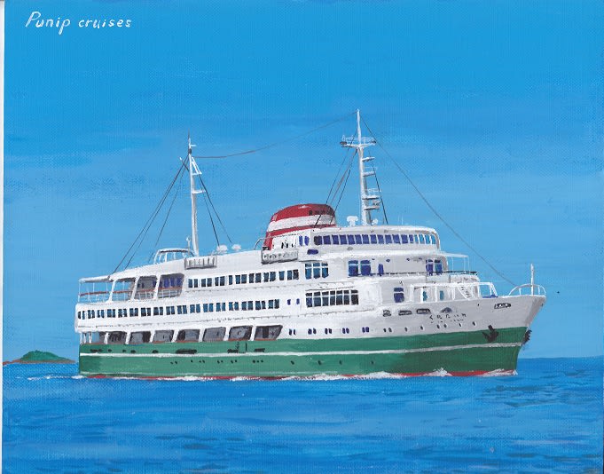 かつての関西汽船のフリートのなかで最も好きだった客船・・・「くれない丸」を昨年横浜港で撮影した「ロイヤルウイング」の画像をベースにまた描いてしまいました。