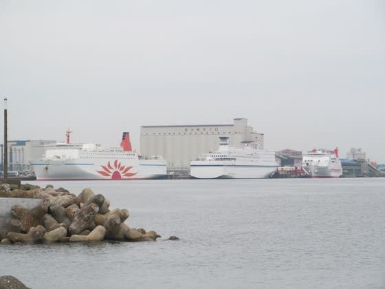 「さんふらわあ だいせつ」は写真の左側「さんふらわあ ふらの」が泊まっているバースに到着するはずでした。