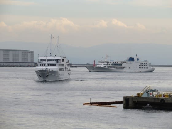 三宮で食事を済ませてモザイクに戻ってくると、ランチクルーズを終えた「コンチェルト」と「ルミナス神戸2」の2隻のレストラン船が仲良く戻ってきました。