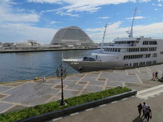中突堤のクルーズターミナルで「にっぽん丸」の出港を見たあと、高浜ふ頭ハーバーランドにテクテク移動