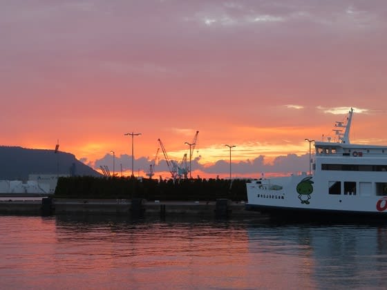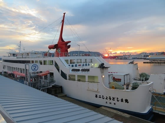 やはり小豆島に行く「第二しょうどしま丸」越しの朝日