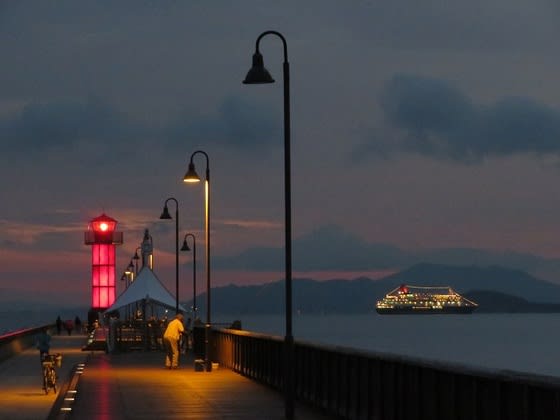 ここ高松に来たらこの景色だけはどうしても撮っておいてあとで絵に描きたいと思っていただけに、イルミネーション輝く「にっぽん丸」とのツーショットまで撮れたのは本当にラッキーでした。