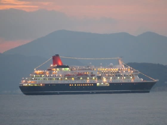 この日の前日は沖合に停泊している「にっぽん丸」も停泊していました。