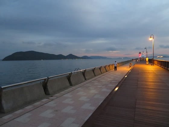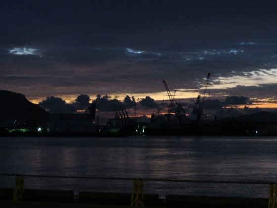 まだできて新しいターミナル「サンポート高松」の海辺の一角で夜明けを待っていると、東の空が明るくなってきました。