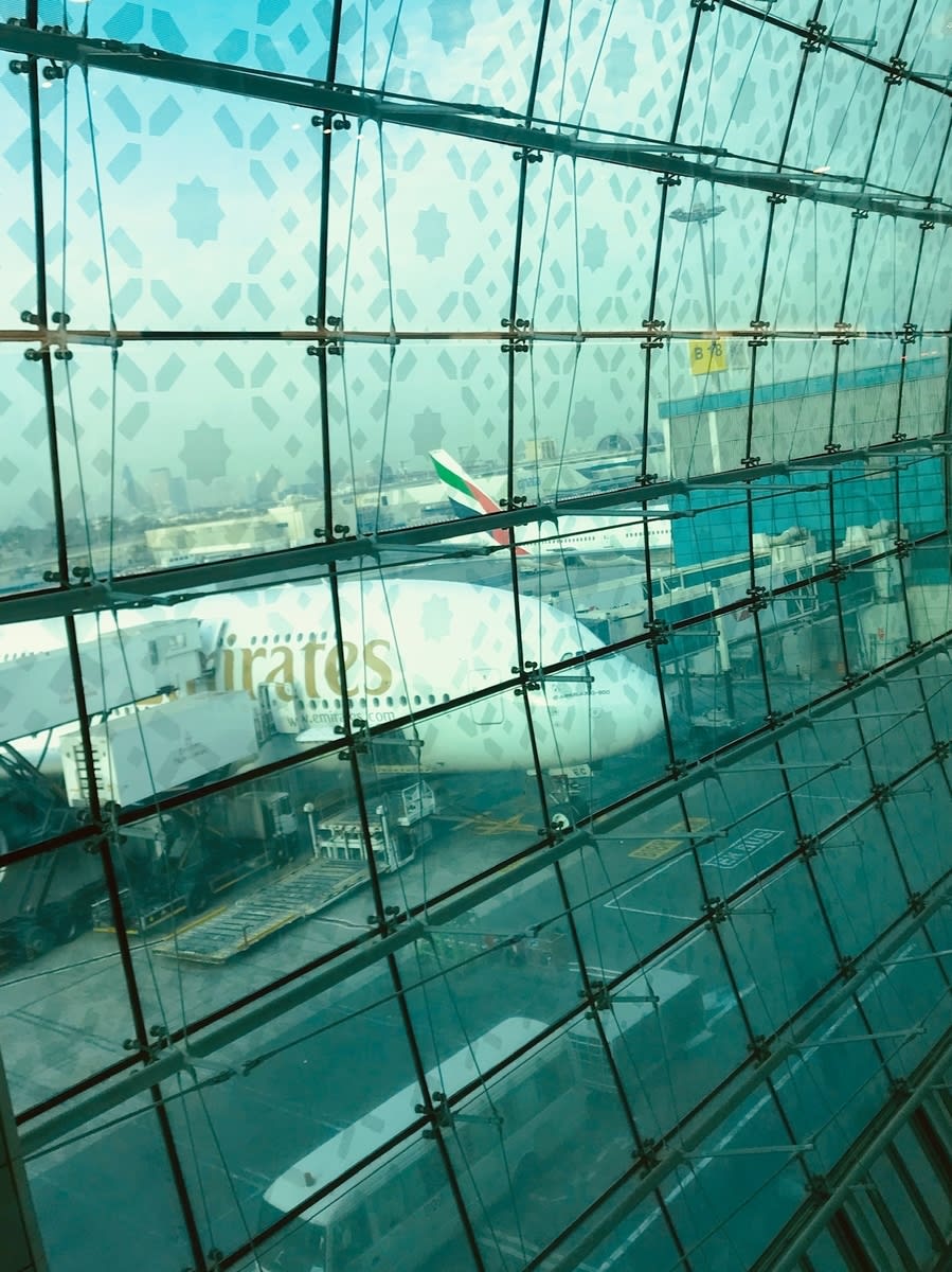 経由地のドバイでは待ち時間がありましたが、ドバイ空港はフリーアクセスネットがあったので、ゆったりした椅子でスマホのゲームで時間をつぶしました。多彩な国の人々が往来し、なんとなく見ているだけで癒されました。
