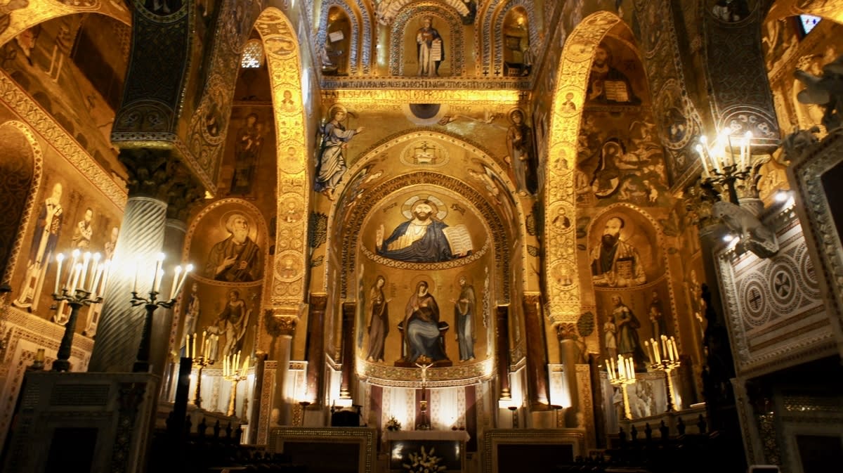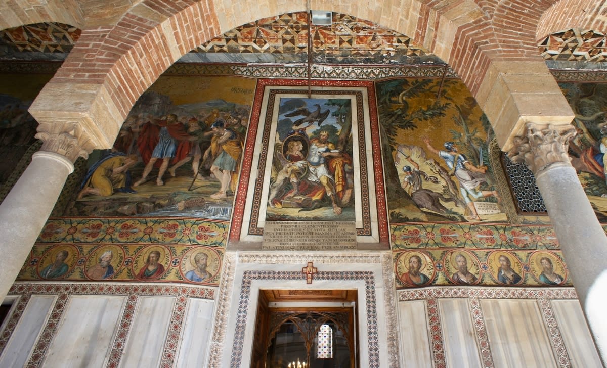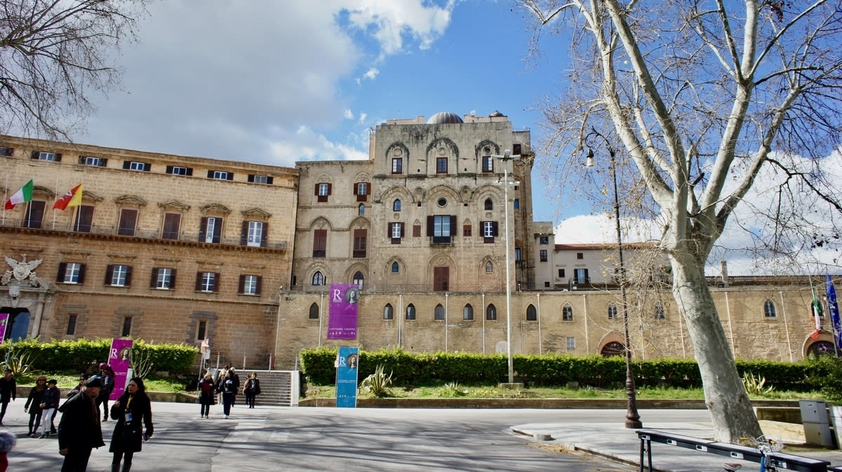 ノルマン王宮の入り口です。ここから中庭を通り、2階に上がってパラディーナ大聖堂に向かいます。