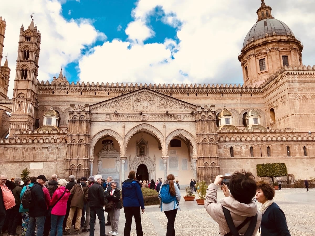 途中パレルモ大聖堂の外観を眺めました。これもイスラム建築とゴシック建築が混在し、個性的でした。