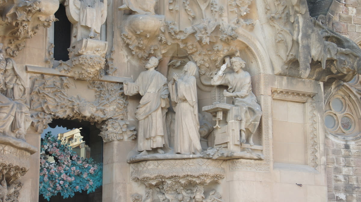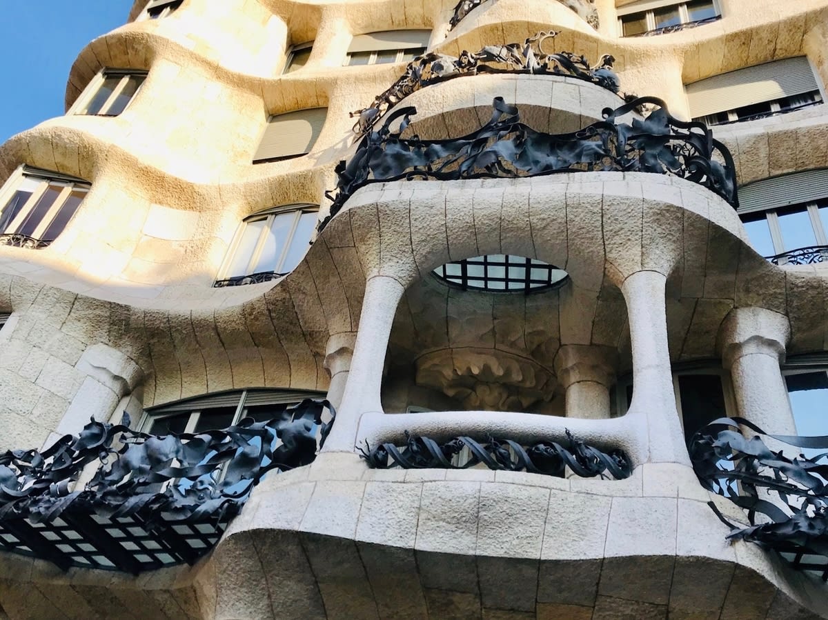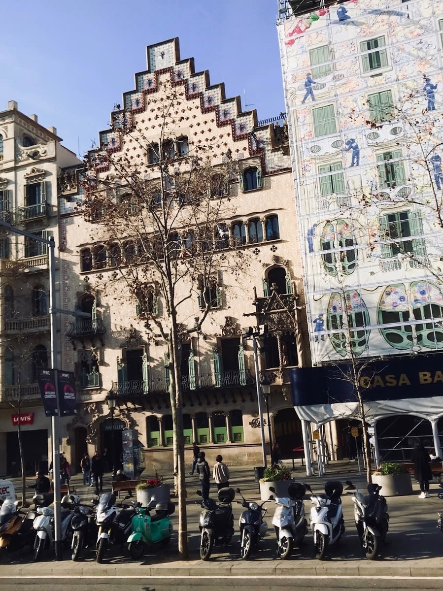 バスを降りたら高級ブランドショップの並ぶグラシア通りを歩きます。同じくガウディが作ったカサミラが見えてきました。世界遺産ですが賃貸マンションとのことです。