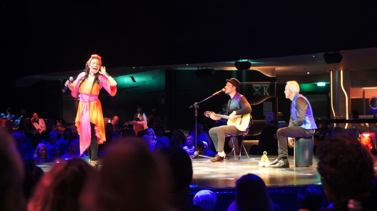ツアーに組み込まれていたシルクドソレイユと、観ながら頂いた夕食のデザートです。シルクドソレイユは女性の空中ブランコのようなもので、日本で見たものよりも規模が小さいですが、微妙に揺れている船内でのパフォーマンスは素晴らしかったです。