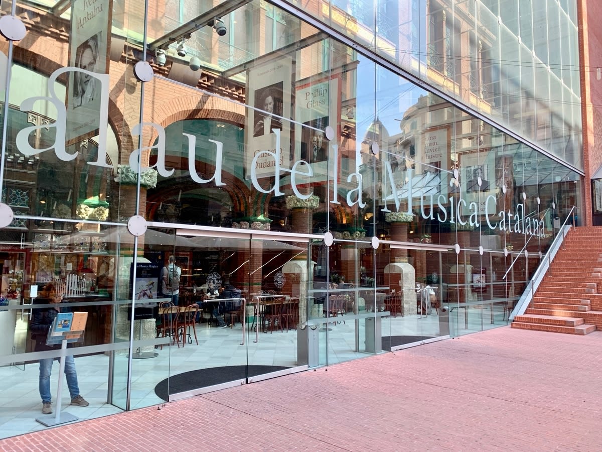 帰りにカタルーニャ音楽堂を写真に撮りました。これは建築家モンタネールの最高傑作で世界遺産です。装飾と淡い色がが素敵です。
