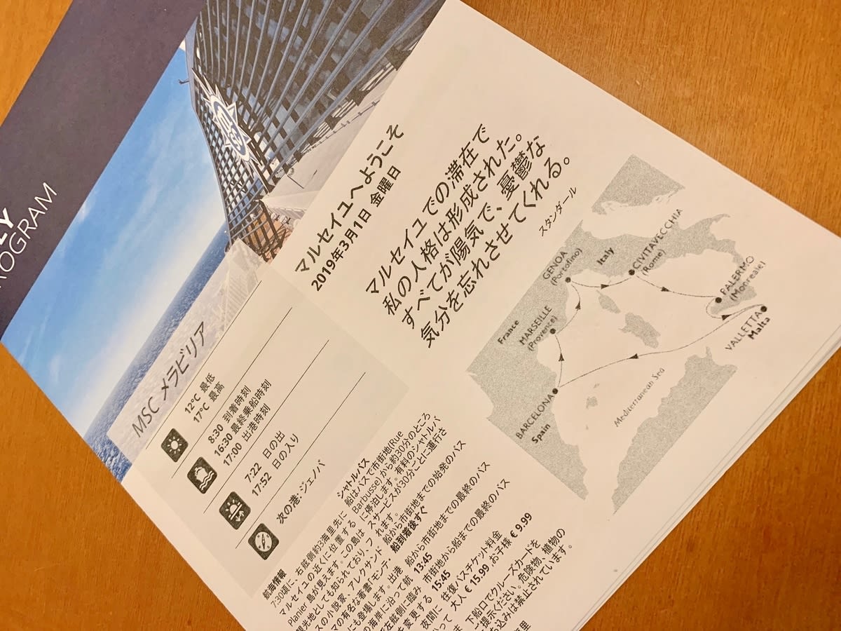 MSCクルーズ at 地中海 7日目(フランスの湾岸都市マルセイユと最後の船内ディナー)