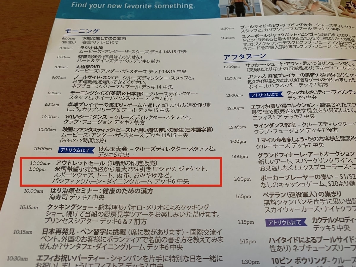 気付くのが遅すぎて、日本人サイズは、売り切れ間近、1つ10ドルで何枚か買えてよかったですが、来年2月のダイアモンドプリンセスでは、もう少し要領よく、買い物をしたいです。