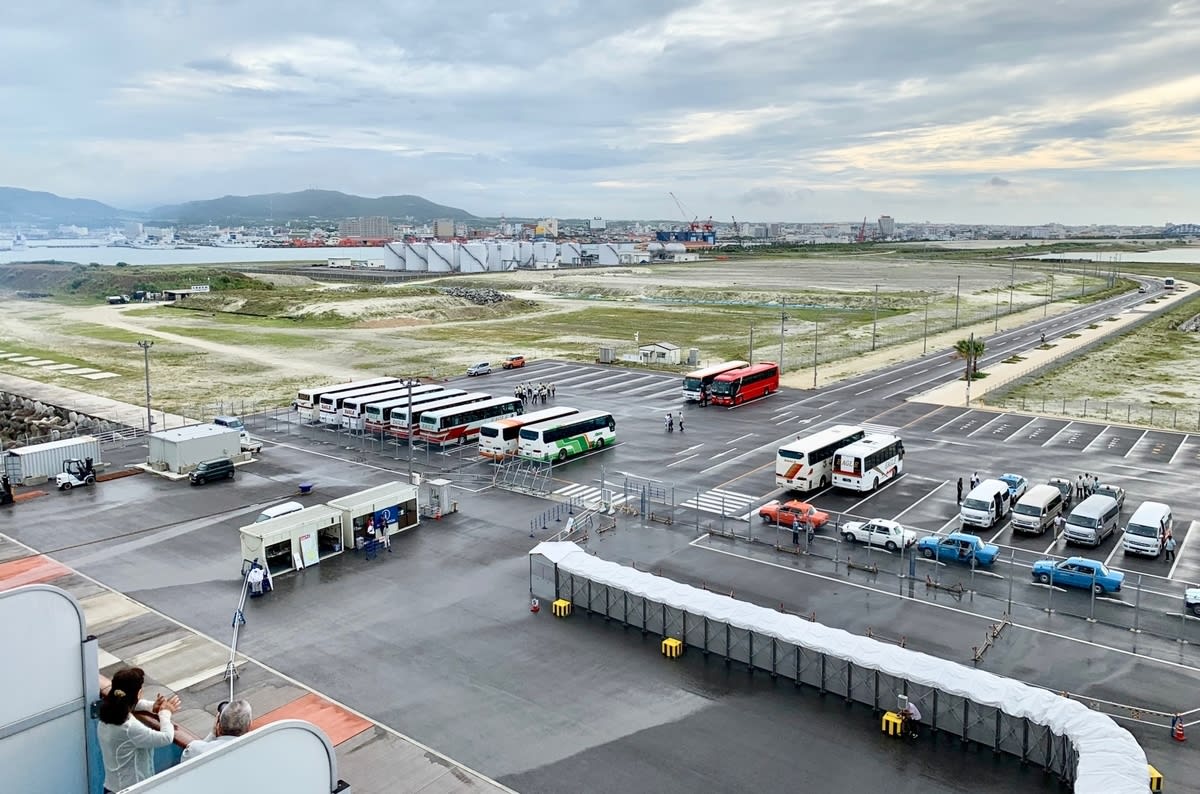 2日間の終日航海日を経て、神戸港に戻りました。日本発着で外国客船に乗ると、途端に外国に行ったような気分になりました。
