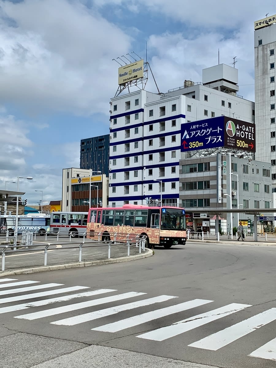 いったん、シャトルバスで函館駅に向かいました。ここからは路線バスや路面電車などで観光地に行くことができます。駅前は広々していて都会的でした。