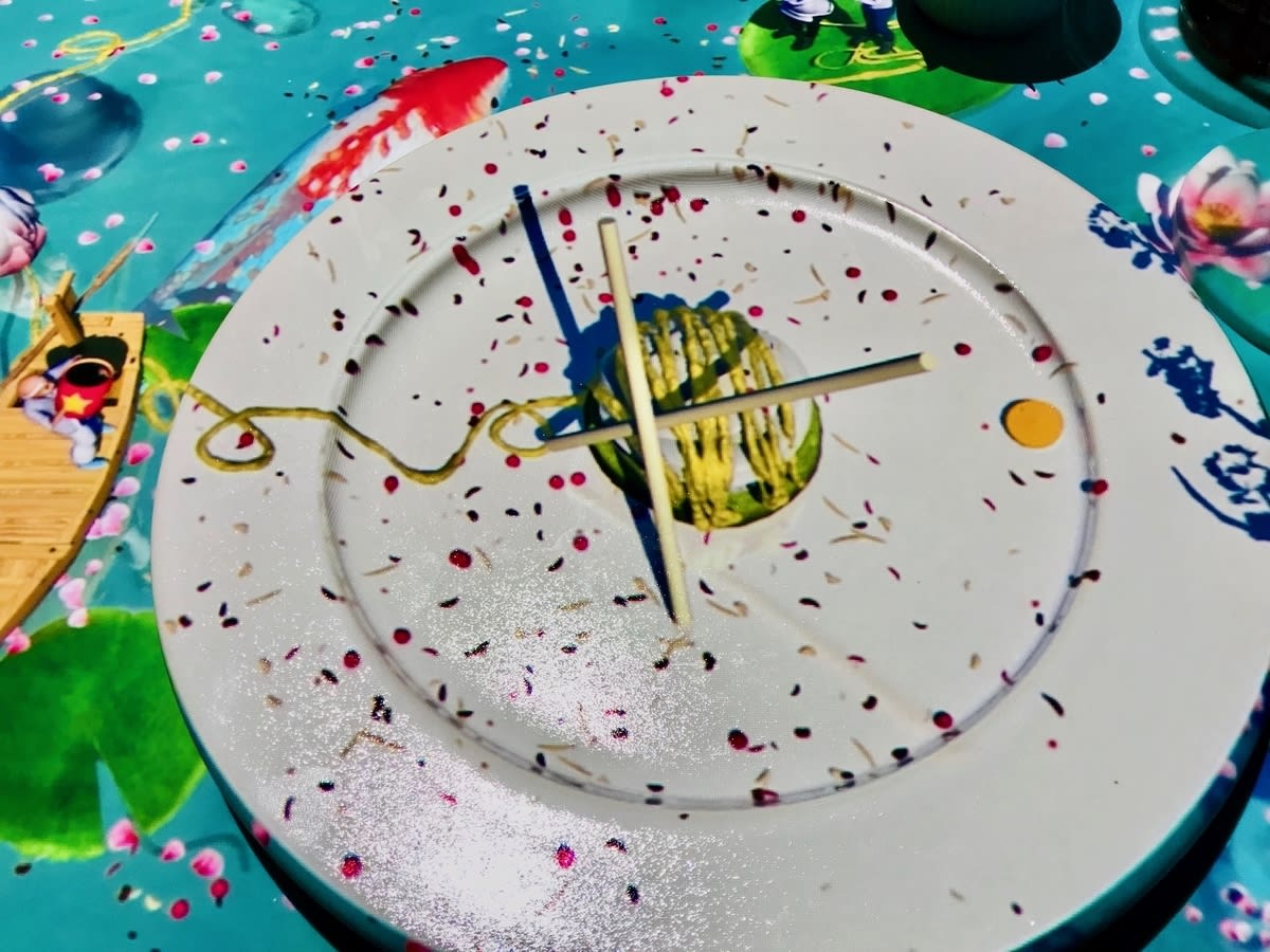 テーブルクロスを入れ替えるように次々景色が変わりますが、和風のこのアニメは食べている間も、微妙にお花が池のさざ波に揺れていて美しかったです。
