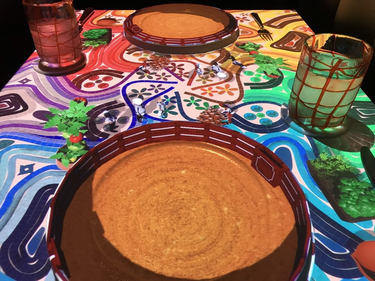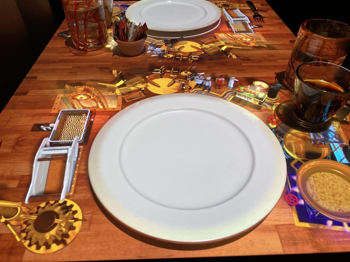 テーブルがアニメの舞台で、小人たちが料理を作ってくれました。