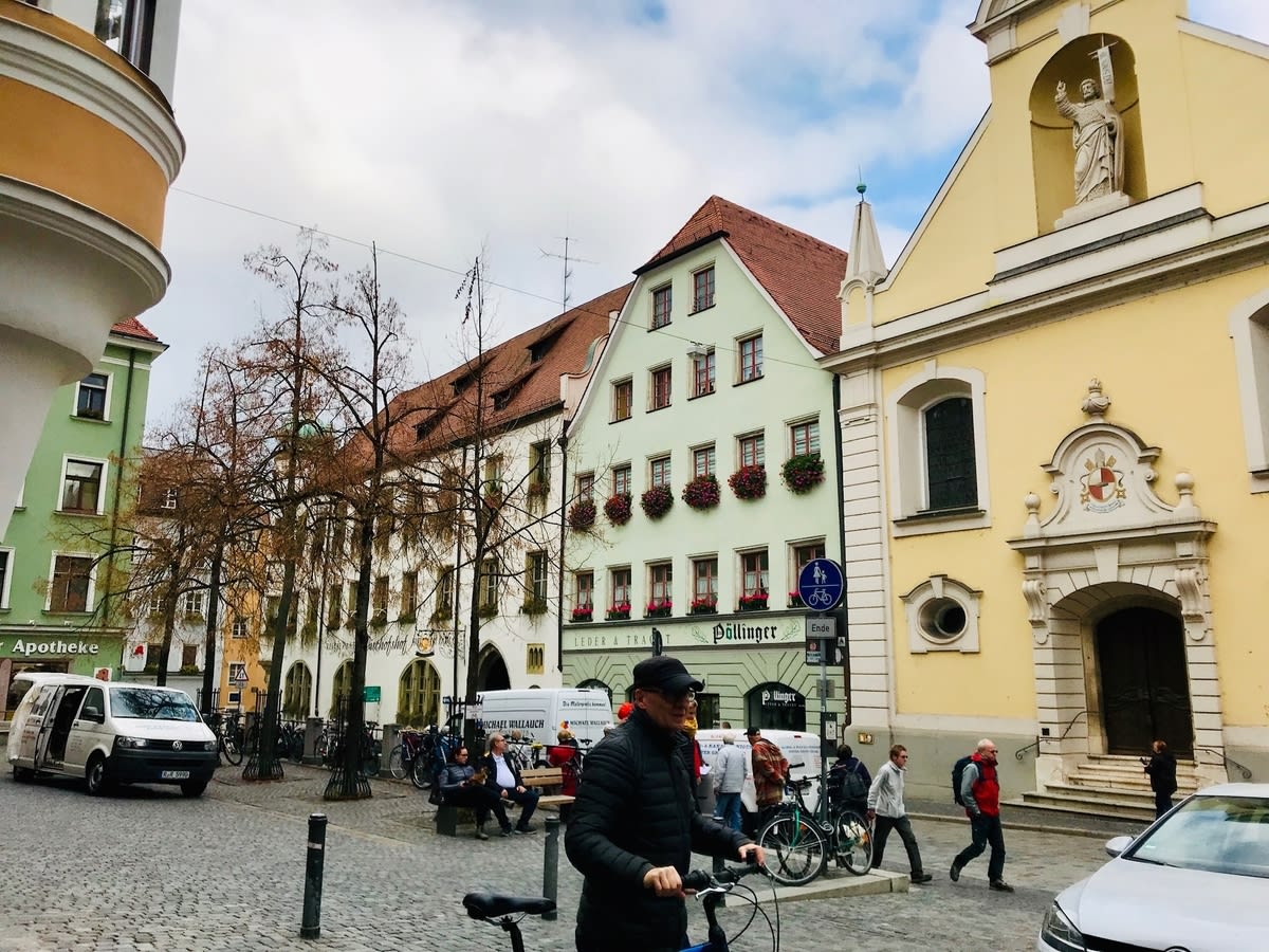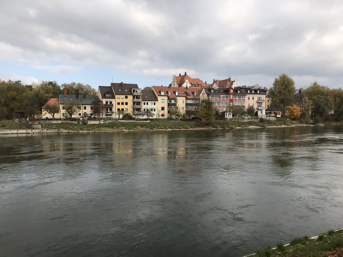 10月30日のツアー4日目は世界遺産レーゲンスブルグ散策観光でした。川沿いをゆったりと景色を眺めながら、徒歩で向かいます。
