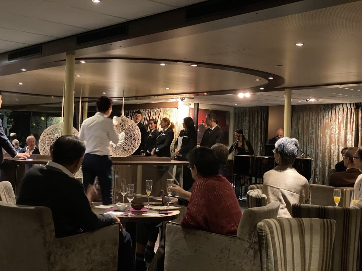 ウエルカムカクテルでは、クルーの紹介をしてくれました。