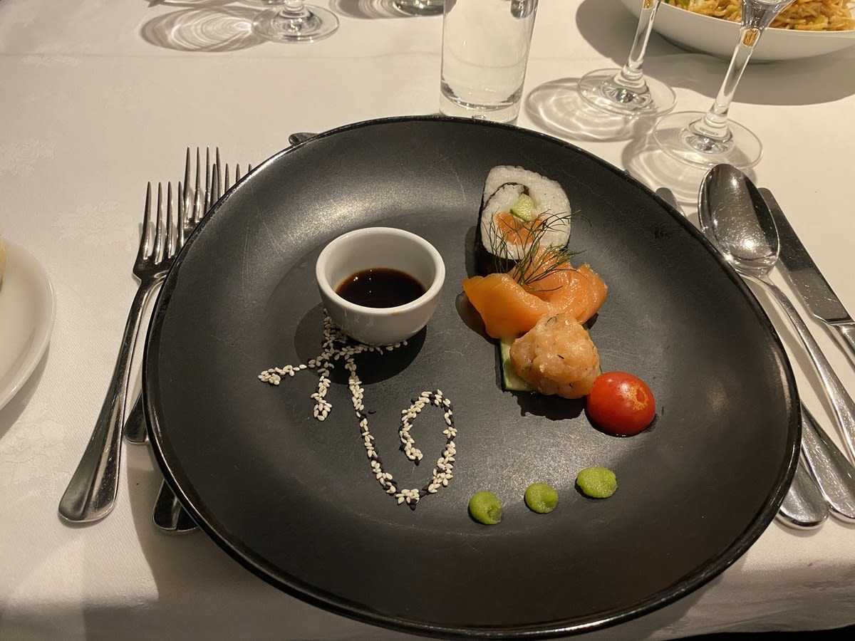 お夕食は期待していた通りで、海のクルーズ船の食事も美味しいですが、更に、旬の食材を使い、盛り付けが細やかな気がしました。