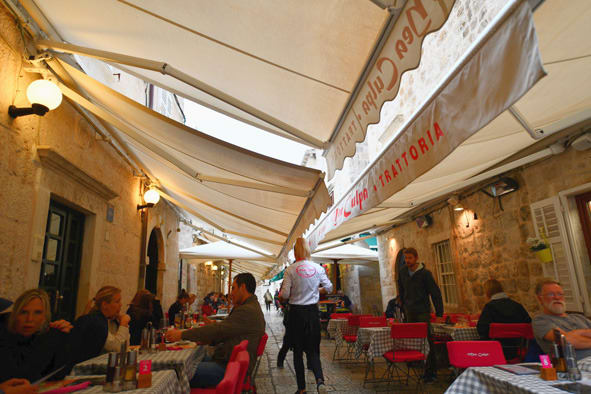 僕達がここに決めたのは「雨」を心配しての事で、頭上にはオーニングが通路を全てカバーできるほど左右から 〝 手 〟を伸ばしている。