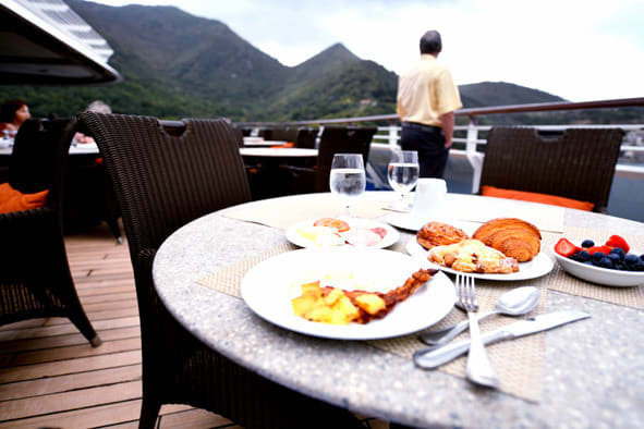 この日は船尾のテラスカフェで朝食。