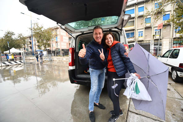 手を振る2名のドライバーとポケットに手を入れたままのジローラモにも・・。