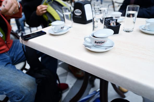 5杯のエスプレッソを時間を気にする事なく飲む。
