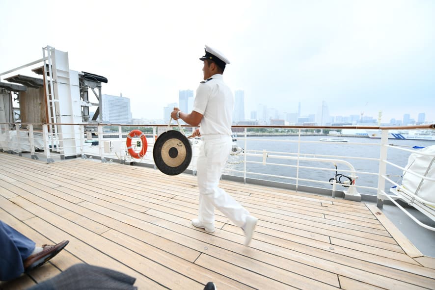 定刻通りに銅鑼の音と汽笛で船体がゆっくりと動き出すのが分かる。