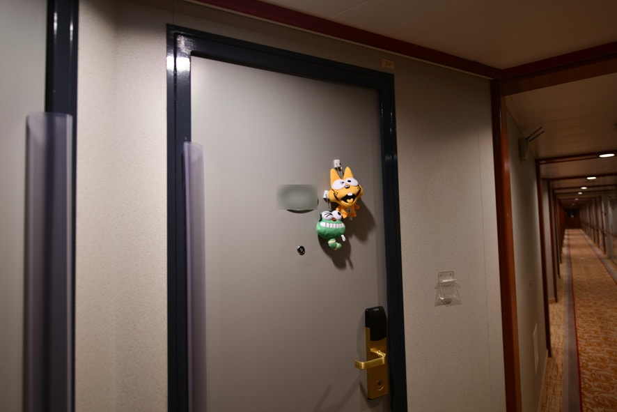 自分の部屋が一目で分かるようにそれぞれのオリジナルのグッズが掲げられている。