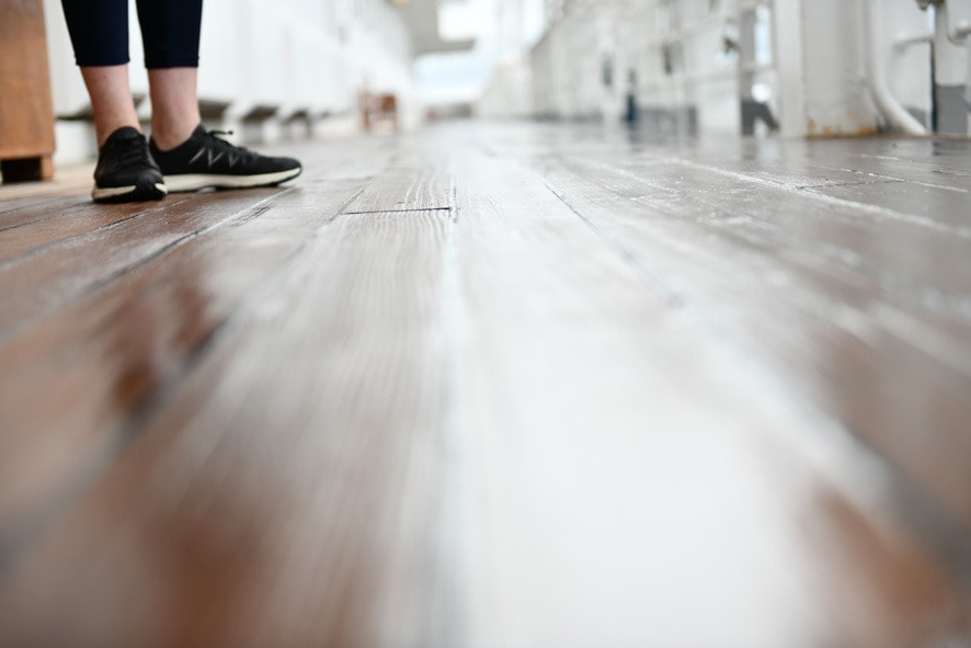 函館の朝の甲板は湿っている。