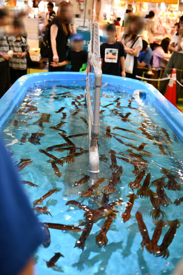 函館の名物を釣り上げてお約束の様に汐を浴び歓声をあげる夏休みの子供たち。