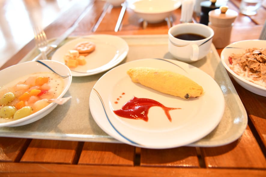 船内から車の予約を取り付け一安心の後に最後の朝食へ。