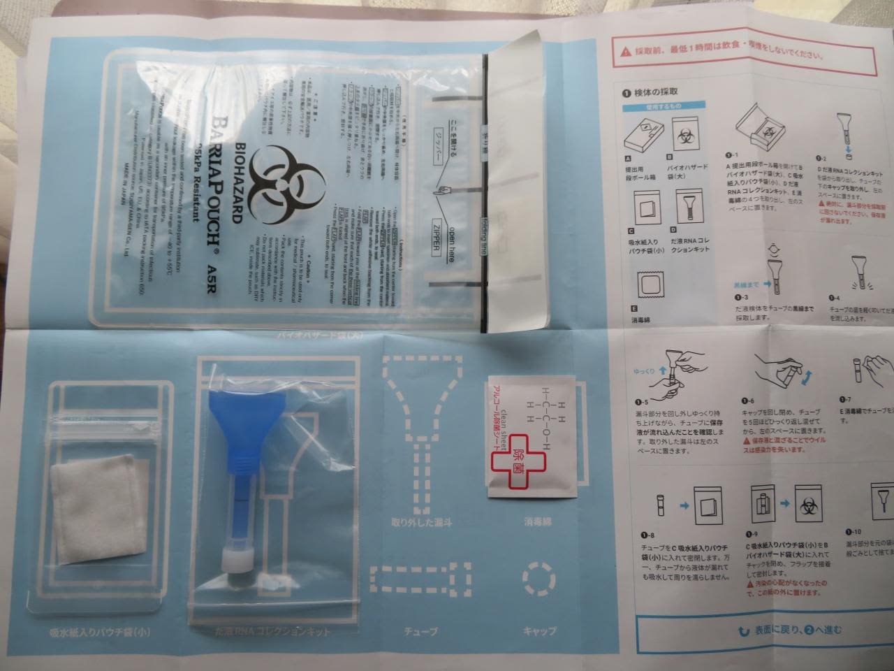 唾液検体をチューブに採取し、提出期限が間近なので早速投函。
