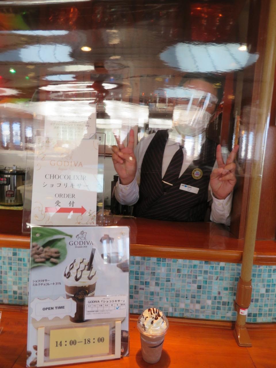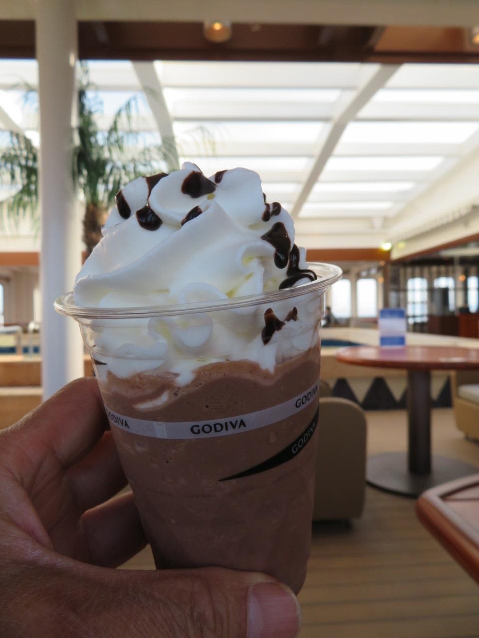 7階後部のリドテラスでは出港前でもGODIVAのショコリキサーが何と無料で!