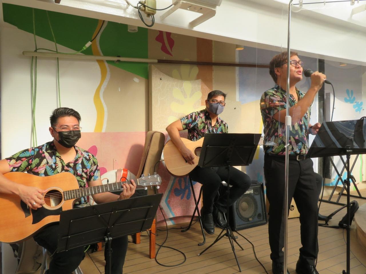 スポーツベランダではフィリピン人クルーによる生演奏がされており、クルーズ気分が高まります。