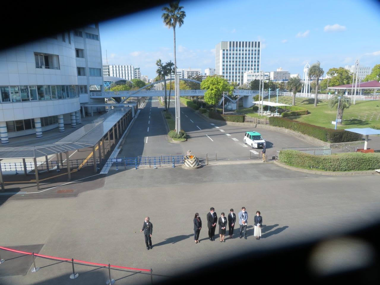 いつもは岸壁からクルーズ船を見送っていますが、今日は乗船客としてやって来たので歓迎されている気分。
