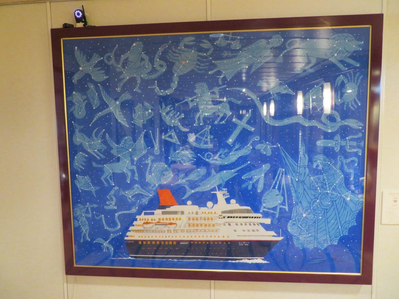 商船三井名誉船長の柳原良平さんが2008年に にっぽん丸に乗船した時に描いた絵画『南半球の星座たち』