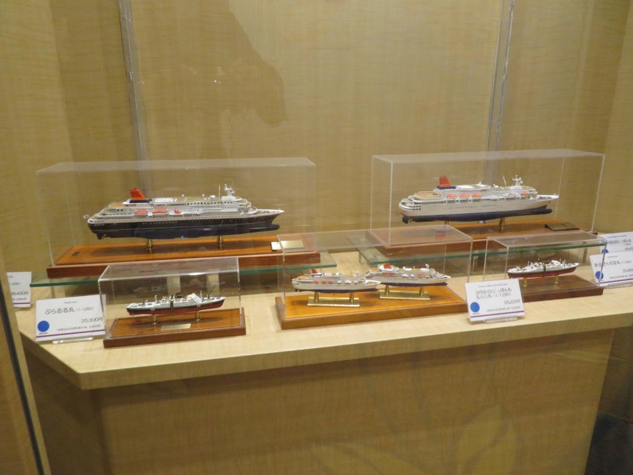 大阪商船時代のぶらじる丸、あるぜんちな丸も展示され販売もされているモデルシップ