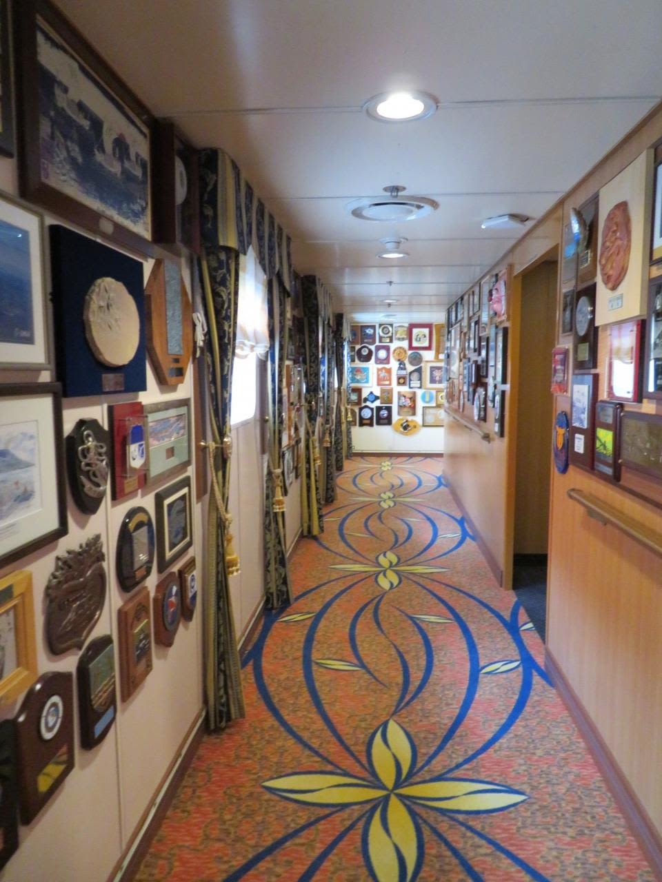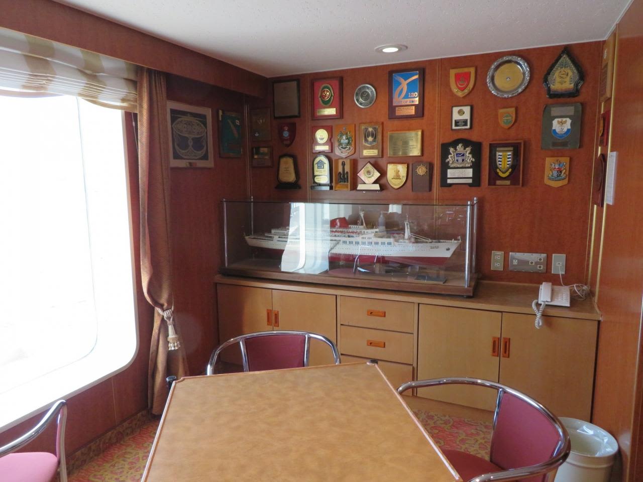 寄港時に贈呈された記念楯の展示コーナー